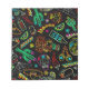 Joyful and Colorful Line Art Mexico Fiesta Pattern, composed by Typical Elements like sugar skulls, maracas, inca warrior, aztec warrior, chilli pepper, cactus, pyramid, lime, tequila, sombrero, tacos, a chameleon, and some floral ethnic and decorative elements. Original Vector Art Copyright BluedarkArt.