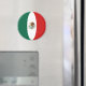 The flag of Mexico has been carefully fitted to the circular form of this magnet. A decorative way to promote Mexican culture.