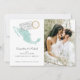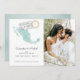 This photo save the date card is the perfect way to announce your destination wedding plans! It features a map of Mexico on a watercolor background with a little heart on map near Los Cabos. There are two passport cancellation stamps that reveal the date of your big day. The back has a QR code that you can link up to your wedding website. All the important wedding details can be personalized.