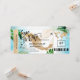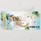 Mexico Destination Beach Wedding Boarding Pass Ticket Gold Plane Save the Date with heart and plane icon with tropical leaves