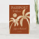 Modern and Elegant Terracotta Mexico World Map Invitation Wedding Destination, like passport. Hand drawn golden palm trees on the front page.