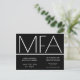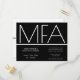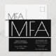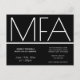 This is an MFA graduation party invitation postcard. This minimalist invitation is black and white. All the words and both colors can be customized.