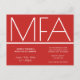 This is an MFA graduation party invitation postcard. This minimalist invitation is red and white. All the words and both colors can be customized.