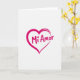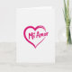 This greeting card shows a large fuchsia-pink heart in the center, set against a plain white background. The heart has a loose, drawn look that feels warm and human rather than perfectly precise. Inside the heart, the words “Mi Amor” appear in a flowing, cursive-style font, also in pink, and they sit neatly across the middle. A small heart is used as the dot over the “i,” adding a sweet little detail that stands out. Near the upper right curve of the heart, a few thin pink strokes trail outward, like a gentle flourish that adds a bit of motion. The overall look is simple and direct, focused on love and closeness 💘❤️. It’s an easy way to share Valentine’s Day feelings with someone special.