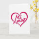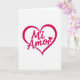 This greeting card shows a bright fuchsia heart outline centered on a white background. Inside the heart, the words “Mi Amor” appear in smooth, flowing pink lettering that looks like neat handwriting. The dot over the “i” in “Mi” is replaced with a tiny heart, adding a sweet detail. Another small heart floats just above the last “o” in “Amor,” like a little finishing touch. The strong pink color stands out clearly against the plain white space, keeping all attention on the message. Overall, it feels romantic, warm, and simple, with a modern twist 💘❤️. It’s a lovely way to say “my love” without needing anything else. Share it to pass along your Valentine’s Day feelings in a friendly, caring way 😘.