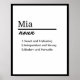 Mia, Girl Personalised Name Definition Poster