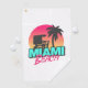 Stylish Retro Miami travel Golf Towel with a skyline of Miami and the word MIAMI BEACH on top. Perfect Miami and Florida gift for every Floridian and Tourist. Perfect gift idea for your loved ones.