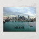 Landscape photograph of the Miami Florida skyline as viewed from the water. A ship is in the foreground. In the background is the city skyline and bridge against a cloudy sky and setting sun. Excellent Miami, Florida gift idea for those who love Miami, Florida, skylines, the beach, oceans, or travel. Also beautiful Miami, Florida souvenir or gift for someone headed to Florida on vacation.