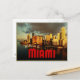 This dramatic scene offers the Miami, FL skyline at night with a vintage postcard look.