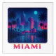 Bring the heat of South Florida nights to your walls with Miami Moonrise, a radiant cityscape design that pulses with tropical energy. This stylized illustration features glowing skyscrapers in vibrant pinks, purples, and blues, reflected in calm waters beneath a full moon. Silhouetted palm trees frame the scene, while the bold “MIAMI” text anchors the composition in a sunset-to-neon gradient.