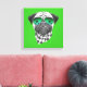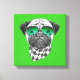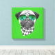 This design features a portrait of pug in with sunglasses and a black and white checkered scarf.