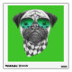 This design features a portrait of pug in with sunglasses and a black and white checkered scarf.