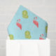 Gorgeous Tissue paper covered in flamingos and limes on a pale blue background.