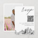 Classic minimalist script wedding RSVP enclosure card personalized with your information and a QR code. Change the QR code link easily in the personalization field without having to separately create and upload a new one. Enter the Zazzle design tool for further customization such as text placement or to remove the photo on the back. Be sure to compare the different paper types to select your favorite texture.