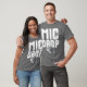 My 11 yo wore adult XL (5’7” 165#). The 8yo is small framed. She wore adult small and tied it in the back. Grandma wore adult large with long sleeve shirt underneath. Tall girl adult medium. Dark haired male adult large. Good quality dark Heather gray, Gildan brand shirt. -it was next up from basic choice and cost about $20 per shirt. Not too thick or thin. Washed and dried well, no major shrinkage. Not see-through. Can wear a bra under it fine. Screen print is just as shown and well done, front and back.