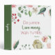 Customizable floral binder featuring a soft watercolor illustrated pattern of pink and cream roses with green foliage. The front has the bible verse Micah 6:8 Do justice. Love mercy. Walk humbly. and the spine is to be personalized with your name.