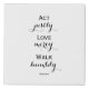 This modern poster with words of encouragement from Micah 6:8 in the Bible that reads "Act justly, love mercy, walk humbly." is designed to make your wall art collections complete.