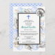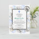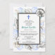 A collection of seashells surround a simple double frame in this baptism invitation. A blue cross accents the top. The back has a sea pattern to complete the theme.