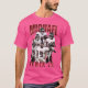 My 11 yo wore adult XL (5’7” 165#). The 8yo is small framed. She wore adult small and tied it in the back. Grandma wore adult large with long sleeve shirt underneath. Tall girl adult medium. Dark haired male adult large. Good quality dark Heather gray, Gildan brand shirt. -it was next up from basic choice and cost about $20 per shirt. Not too thick or thin. Washed and dried well, no major shrinkage. Not see-through. Can wear a bra under it fine. Screen print is just as shown and well done, front and back.