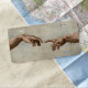 The Creation of Adam by Michelangelo Masterpiece Painting - The Creation of Adam is one of the most famous paintings in the world, created by master artist Michelangelo in Rome. The Creation of Adam is a classic fresco that Michelangelo painted in Rome's Vatican, on the Sistine Chapel, in 1511–1512. The Creation of Adam print on our gift is a portion of the fresco painting, showing the entire creation of Man in the Biblical Book of Genesis, where God (on the right) gives life to the first man, Adam (on the left). The painting shows the almost-touch of the hands, between God and Adam. The image is an iconic Renaissance painting. Michelangelo shows God as an old white-haired and white-bearded man, wearing a long white garment. Both God and Adam have their arms outstretched to each other, as if God is generating a spark of life into the new man Adam. The Michelangeo painting shows Man's likeness to God, showing God created humans in his own image.