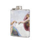 Well made flask, a little better than I had expected. Flask came in clear plastic box which gave it a nice presentation when I took it out of the zazzle packaging. Image is not printed on flask but on sticker. Don't know how this will hold up I haven't used it yet. This would make a Great gift! I plan to purchase more for friends! Cheers. I thought a little brighter than computer. Very crisp, writing wasn't