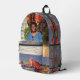 This original collage design backpack features Michelle Obama at a podium, layered with cut-out illustrations from chemistry, physics, and sociology textbooks.