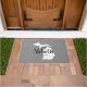 Modern farmhouse personalized doormat with your family name inside your state map. Faux burlap canvas texture background. Click Customize It to add your own text and images and create a unique one of a kind design!