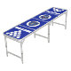 Not that I've had experience to buy that many beer pong or ping pong tables in my life, but I know a good quality product when I see it! This beer pong table is sturdy and solid and still lightweight enough to be portable. It folds and unfolds smoothly for easy storage or setup. From order to arrival here, the time was half of what was estimated, and that was during the holiday season. And -- most importantly -- the recipient LOVED it! I would definitely purchase this product again or other products by the maker Hampton Technologies , should an occasion to do so arise. The printing is beautiful! The blues and reds are deep and rich and the white "chalk look" is clean and crisp,. The photo (taken in low light) doesn't really do it justice. We know it's printed, but take a step back, and it really does look like chalk on a blackboard. To get the blue background like we did (instead of the traditional green chalkboard background), use background color #26306A. :)