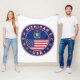 Badge of Michigan with flag of Michigan and flag of USA colors, rounded shape.