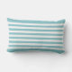 A personalized Michigan Home lumbar pillow featuring the state silhouette in aqua with a small heart marking your hometown. Navy Home lettering and script family name create a crisp, coastal-inspired monogram on a clean white background, with coordinating aqua and white stripes on the reverse. The heart can be repositioned to highlight your Michigan city. A classic gift for Michigan families.