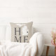 Stylish welcome pillow features a typography design with "Home" text and Michigan state map. The soft black / onyx heart city marker can be positioned over the city where you live via Customize. Beige, soft black, and white colors. A pattern of horizontal stripes dresses up the back of the pillow.