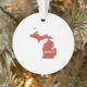 The outline map shape of the wolverine state of Michigan filled in red with the word home written inside is a perfect Christmas ornament for the Michigander who loves their home state.