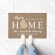This warm rustic doormat features the Michigan state silhouette as part of "Home" with "Welcome To Our" arched above and your family name and city in classic dark text on a natural tan background. The organic, earthy tone pairs perfectly with farmhouse and cottage-style entryways. A charming housewarming gift for any Michigan family. All text is fully customizable.