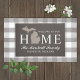 This understated taupe gray doormat features the Michigan state silhouette integrated into "Home" with "Welcome To Our" arched above and your family name and city below in white script. The soft neutral tone complements any porch style from farmhouse to modern. A lovely housewarming or realtor closing gift for Michigan families. All text is fully customizable.