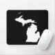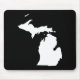 The shape of the state of Michigan in black and white. Change the background color or add a custom souvenir text message.