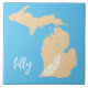 Michigan Map Feather Custom Name Blue Tan Ceramic Tile