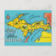 It's a very colorful map of the Upper Peninsula of the State of Michigan. This vintage, retro image shows Lake Superior and Lake Michigan along with landmarks and towns on the peninsula.
