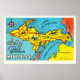 It's a very colorful map of the Upper Peninsula of the State of Michigan. This vintage, retro image shows Lake Superior and Lake Michigan along with landmarks and towns on the peninsula. A wonderful poster to have at your lake house or to give as a gift. We've given the image a border and formatted it to 16x24 to fit a standard frame.