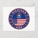 Badge of Michigan with flag of Michigan and flag of USA colors, rounded shape.