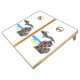 Natural Wood Cornhole Set, Royal Blue and Yellow bags