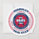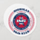 A bold, patriotic design featuring red, white, and blue evokes feelings of freedom, loyalty, and unity. The state name, "Michigan," is prominently displayed, surrounded by information about the capital, residents, region, time zone, and geographic coordinates. The backside is blank - leave it as is or add your text by accessing the design tool. Perfect for national holidays and patriotic events.