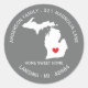 Unique State of MICHIGAN New home address label sticker set on a gray background with a red heart & airplane.