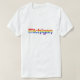 Basic T-Shirt with text sign "Michigan" in colors colors of the LGBT (lesbian, gay, bisexual, and transgender people) rainbow pride flag, rainbow love gay American state pride lgbtqiap+ design