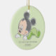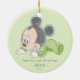Celebrate your little one's first Christmas with this adorable Mickey Mouse ornament! Featuring baby Mickey Mouse, this design is perfect for commemorating this special milestone. The cheerful green background adds a classic Christmas touch, making it a perfect keepsake for the holiday season. Personalize with your child's name to create a treasured ornament that will bring joy year after year. A magical gift for new parents and a charming addition to any Christmas tree!