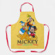Great color and even though I ordered the kid size, it covers well enough to use during the holidays. I am not a big woman and prefer a shorter apron. I stand 5"6" and the length of the garment goes to mid-thigh. The tie straps fit well at my waist and even though there is no neck strap adjustment, the opening is plenty big enough. I am happy with the size and fit. I am sharing my apron with my 10 year old grandson, too! The color is vibrant and looks good, as shown on the website. The stitching looks strong and reinforced. Photographed is front side and back side of the apron, reinforced straps and coloring. My phone camera may not be the best at showing the details.