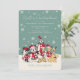 A festive Winter ONEderland birthday invitation starring Mickey, Minnie, Donald, Daisy, Goofy, and Pluto all dressed in cheerful holiday scarves and Santa hats. Snowflakes fall across a frosty teal sky, creating a magical winter backdrop for your celebration details. The layout includes customizable text for the child’s name, age, date, location, and RSVP, plus an optional line for fun extras like food or games. This charming winter design brings classic Disney joy to a memorable first birthday celebration.