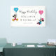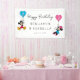Welcome guests to a double dose of birthday fun with this adorable Mickey and Minnie twins birthday party banner ! Featuring Mickey Mouse holding a blue heart-shaped balloon and Minnie Mouse holding a pink heart-shaped balloon, each with the twins' ages inside, this sweet design sets the perfect tone for a magical celebration. With a clean white background and playful text details, this customizable banner is ideal for greeting friends and family at a twin birthday party full of Disney charm.