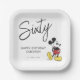 Celebrate in vintage Disney style with this customizable Mickey Mouse birthday paper plate! Featuring classic artwork of Mickey Mouse in his red shorts and yellow shoes, this design includes elegant black lettering that reads “Sixty,” with editable fields for the name and date to match any age or celebrant. Perfect for milestone birthdays, kids' parties, or Disney-themed events, this plate adds a nostalgic and joyful touch to your celebration. Personalize it with your loved one’s name and special date for a truly unique party detail.
