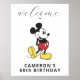 Welcome guests with timeless Disney charm using this customizable Mickey Mouse birthday welcome sign! Featuring classic artwork of Mickey Mouse in his iconic red shorts and yellow shoes, this cheerful design is perfect for any age celebration. The stylish layout includes elegant script for "Welcome," followed by editable text fields for the name and birthday age, making it a great choice for kids, adults, or milestone parties. Whether it's a first birthday or a 60th, this sign adds a playful and nostalgic touch to any Mickey-themed event.