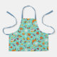 Great color and even though I ordered the kid size, it covers well enough to use during the holidays. I am not a big woman and prefer a shorter apron. I stand 5"6" and the length of the garment goes to mid-thigh. The tie straps fit well at my waist and even though there is no neck strap adjustment, the opening is plenty big enough. I am happy with the size and fit. I am sharing my apron with my 10 year old grandson, too! The color is vibrant and looks good, as shown on the website. The stitching looks strong and reinforced. Photographed is front side and back side of the apron, reinforced straps and coloring. My phone camera may not be the best at showing the details.